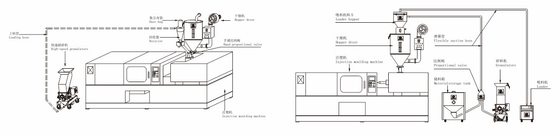 ■ 根據(jù)使用的不同,XIAOMA低速在線破碎機(jī)系列在選配裝機(jī)的方式上也有多種選擇,可選擇配有送料風(fēng)機(jī)的帶回收系統(tǒng)的立即回收方式,也可選擇配有抽吸槽及裝袋接口的使用方式,多樣化的搭配方式使得XIAOMA生產(chǎn)的低速破碎機(jī)系列具有廣泛的用途,為客戶解決不同的在線破碎方案。